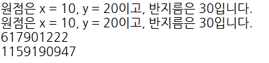 return "원점은 " + point + "이고, 반지름은 " + radius +"입니다.";
