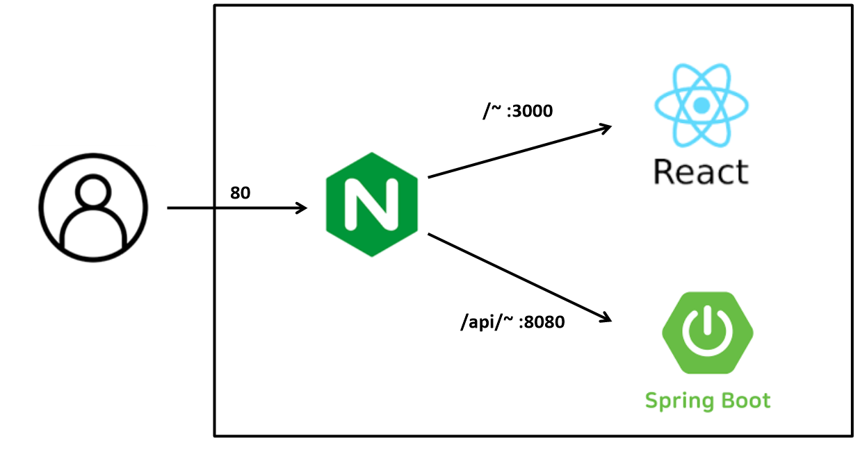 exaple.com/api/~ 으로 들어오면 8080번 포트 스프링 부트로 요청을 보내는 것이다.