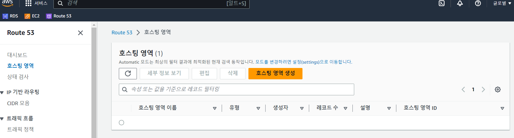 2. 호스팅 영역을 생성하고, 구매한 도메인을 등록한다.
