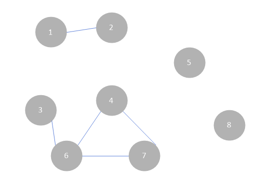 [1, 2] [3, 6, 7, 4], [5], [8]로 4개의 네트워크가 정답이 된다.