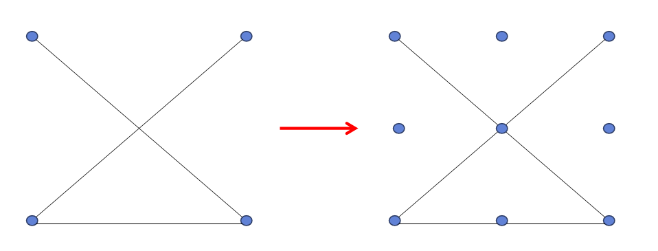 - 대각선이 교차할 때도, 방이 하나 만들어지는데 이 경우는 교차하는 지점을 표시하지 않았기 때문에 count 되지 않는 반례가 있다. 그래서 크기를 2배로 늘린다.